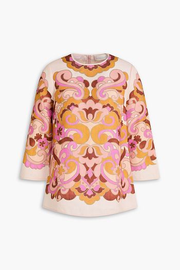 Embellished broderie anglaise linen and cady turtleneck blouse