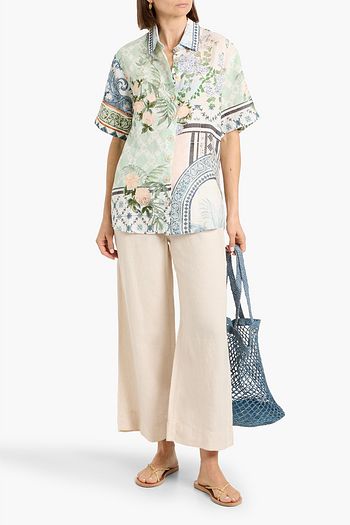 Embellished floral-print linen and silk-blend shirt