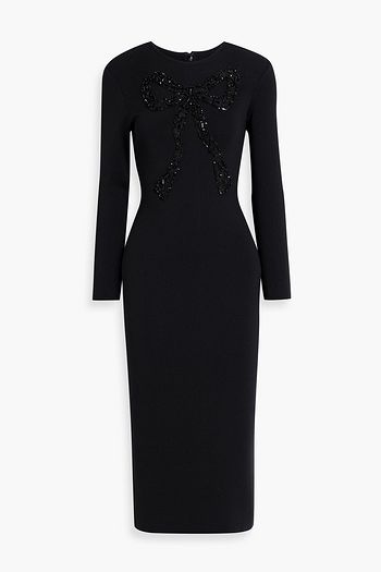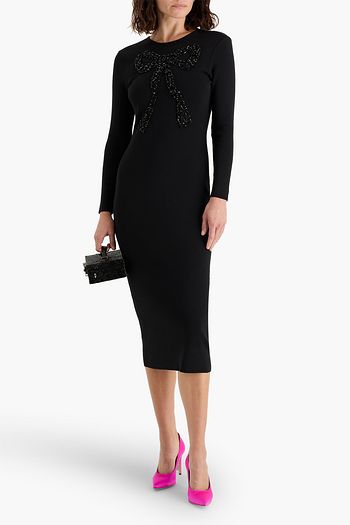 Bead-embellished wool-blend jersey turtleneck midi dress