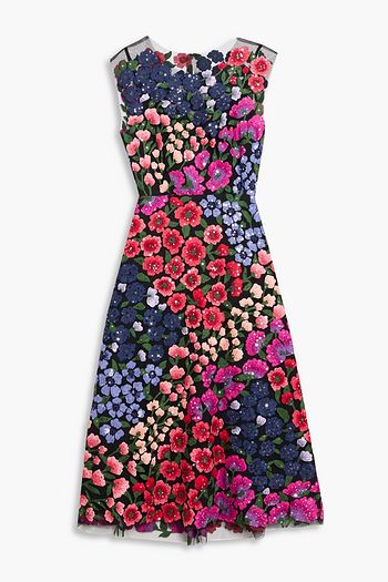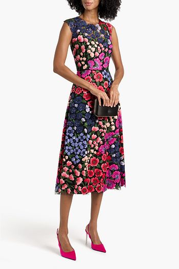 Melody embellished tulle and crepe midi dress
