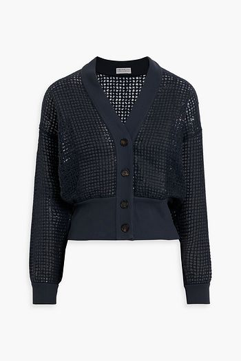 Sequin-embellished open-knit cotton, linen and silk-blend sweater