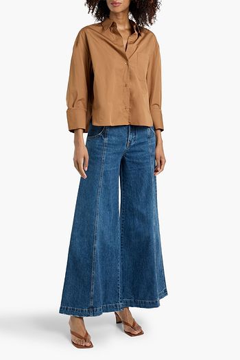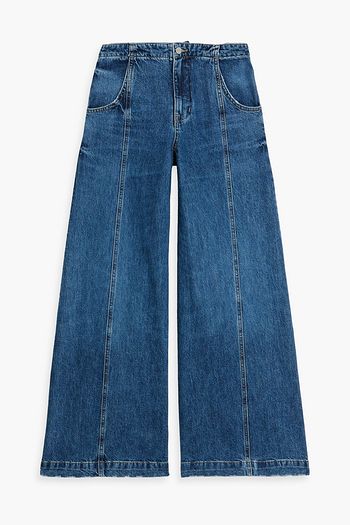 Ramblin Man leather-trimmed high-rise wide-leg jeans