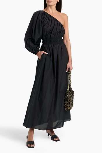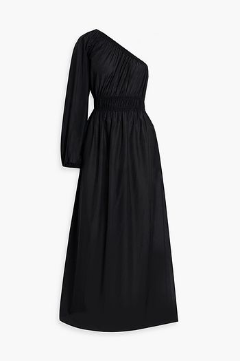 Off-the-shoulder shirred cotton-poplin maxi dress