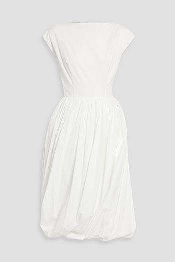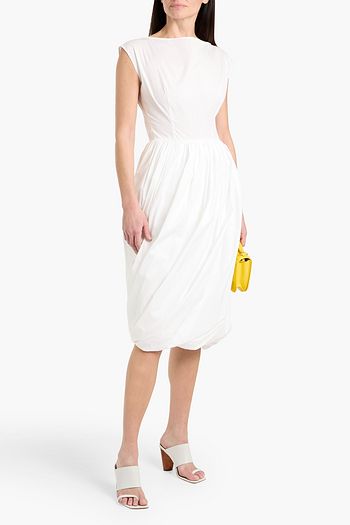 Aire strapless stretch knit-paneled linen and silk-blend maxi dress