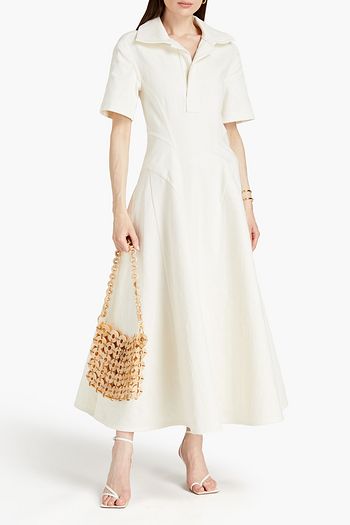 Linen-blend canvas maxi dress