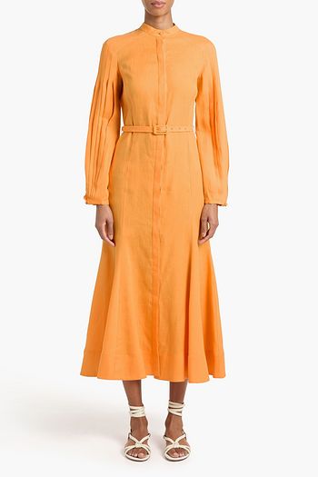 Lydia belted linen midi dress
