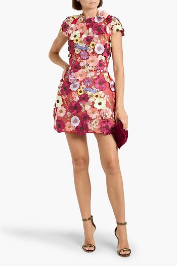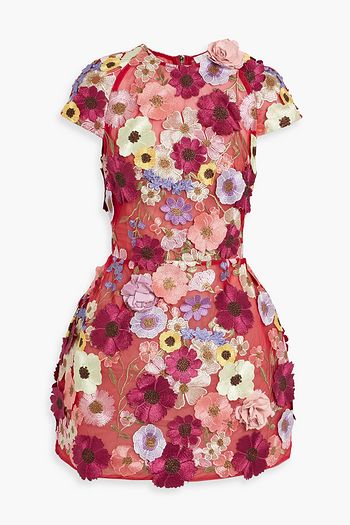 Jasmine floral-appliquéd tulle mini dress