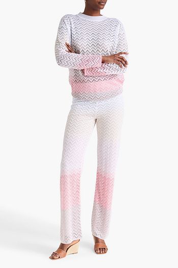 Sequin-embellished metallic crochet-knit straight-leg pants