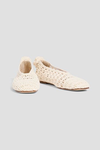 Floral-appliquéd crochet ballet flats