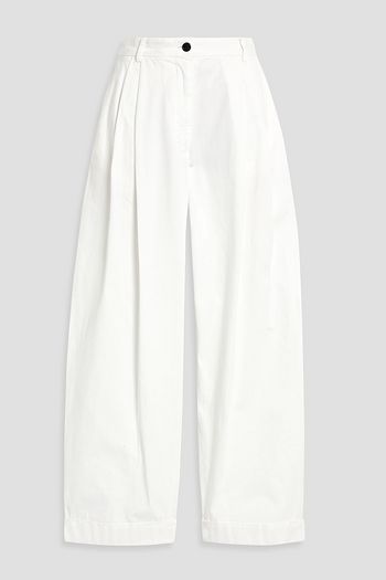 Pleated pinstriped herringbone wool and cotton-blend wide-leg pants