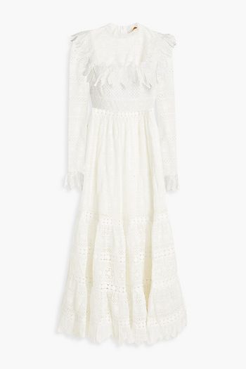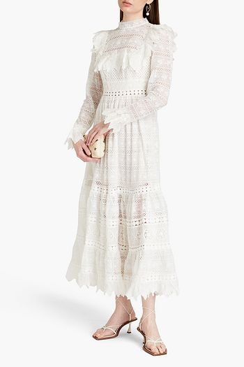 Flocked silk and linen-blend tulle, lace and gauze mini dress
