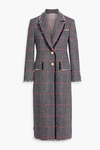 Frayed checked cotton-tweed coat