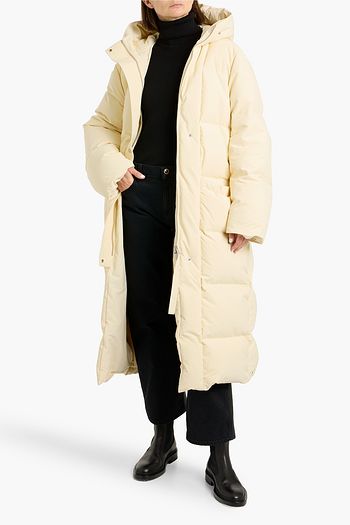Quilted shell hooded down coat