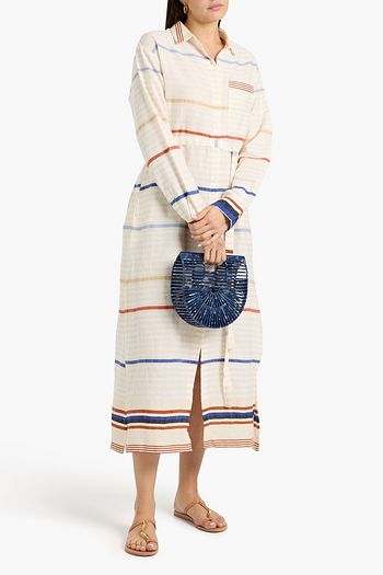 Makeda belted striped cotton-blend maxi shirt dress