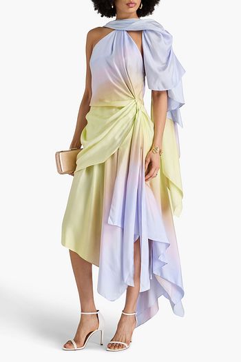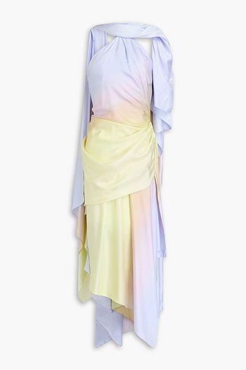 Asymmetric dégradé silk-twill midi dress