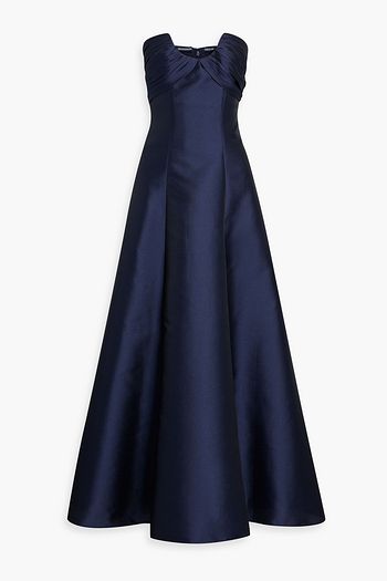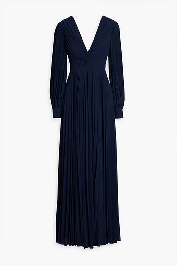 Off-the-shoulder ruffled plissé-georgette and crepe gown