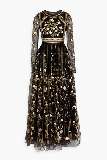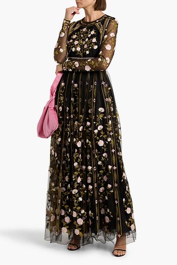 Yesenia bow-detailed tiered embroidered cotton-blend gauze midi dress
