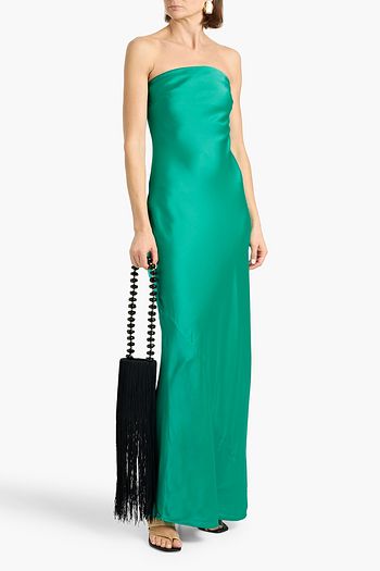 Aire strapless stretch knit-paneled linen and silk-blend maxi dress