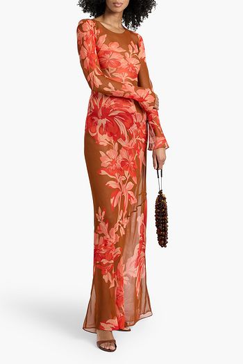 Ruffled floral-print silk-chiffon maxi dress
