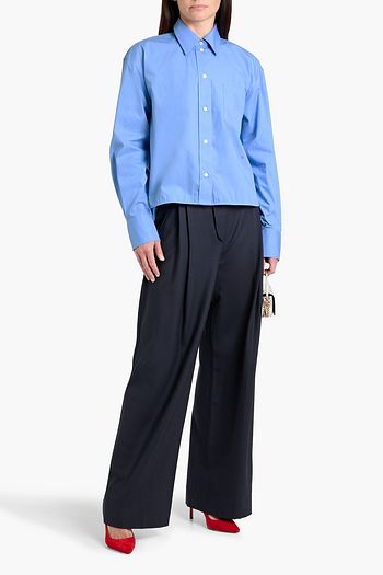 Bead-embellished striped cotton and silk-blend poplin shirt