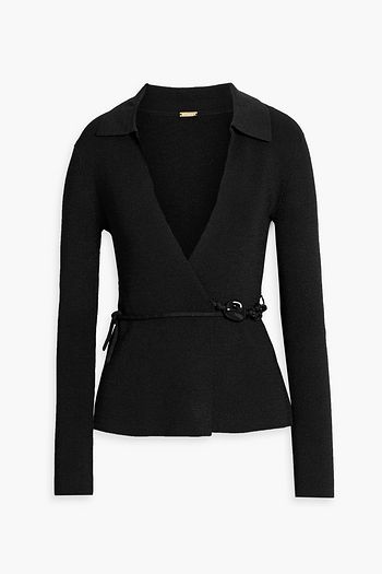 Bead-embellished ribbed cotton-jersey turtleneck top
