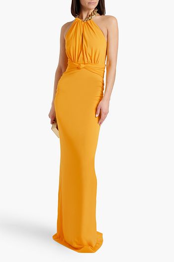 Draped stretch-jersey halterneck gown