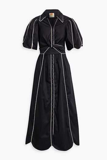 Isa cutout shirred broderie anglaise cotton-blend midi dress