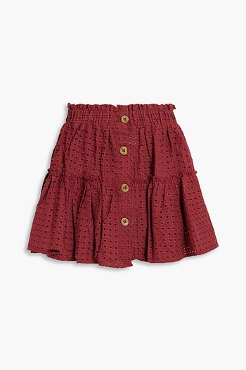 Lynx ruffled broderie anglaise cotton-blend mini skirt