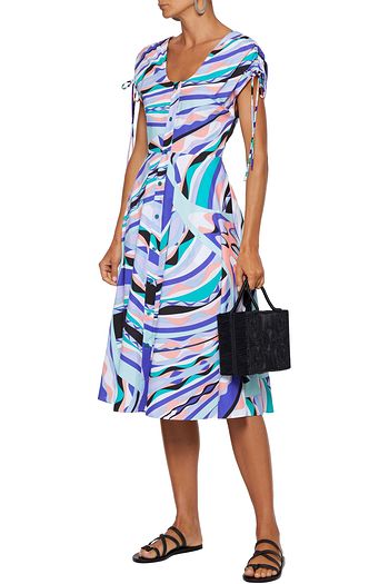 Smocked cotton-blend poplin midi dress