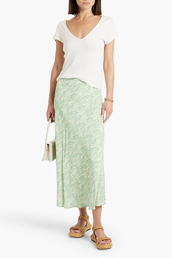 Metallic-trimmed striped crocheted cotton-blend maxi skirt