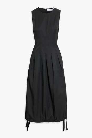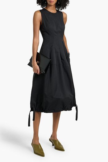 Cotton Oxford, piqué and striped wool-blend midi shirt dress