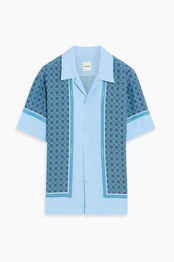 Floral-print crinkled-crepe shirt