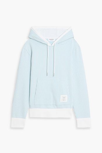 Striped cotton-seersucker hoodie