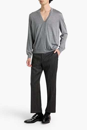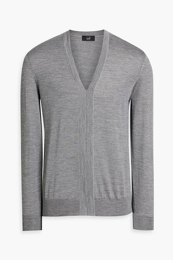 Quilted shell-paneled merino wool sweater
