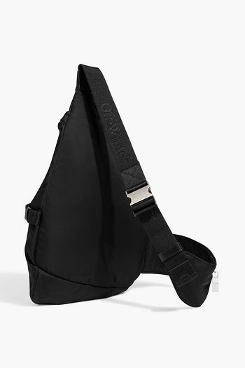Logo-embroidered padded leather messenger bag