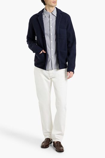 Striped cable-knit wool polo shirt