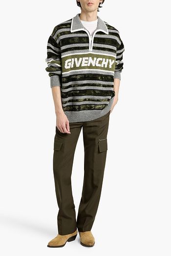 French cotton-terry and jacquard-knit half-zip sweater