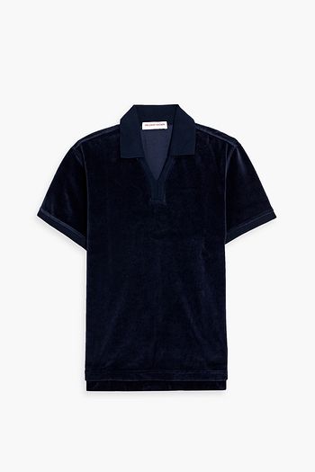 Clive cotton and linen-blend velour polo shirt
