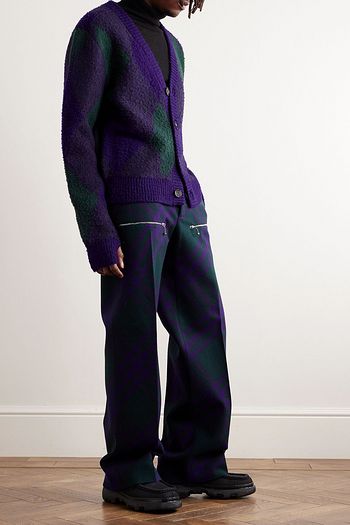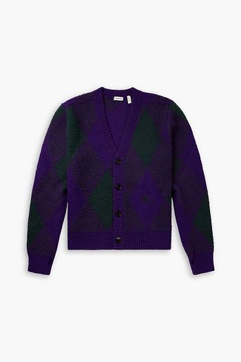 Brushed argyle jacquard-knit wool cardigan