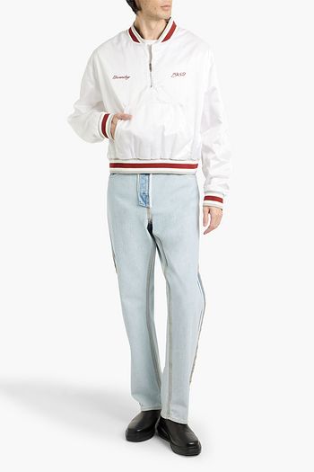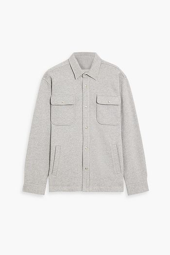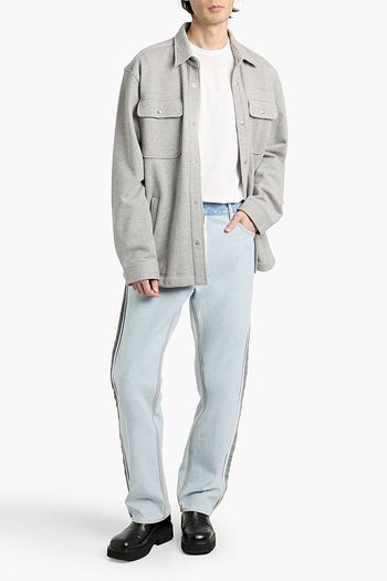 Striped silk and cotton-blend twill-paneled herringbone wool overshirt