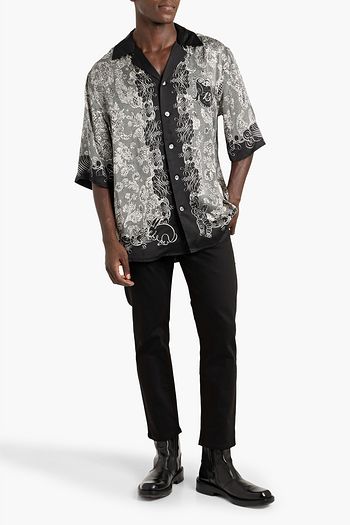 Striped silk and cotton-blend twill-paneled herringbone wool overshirt