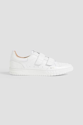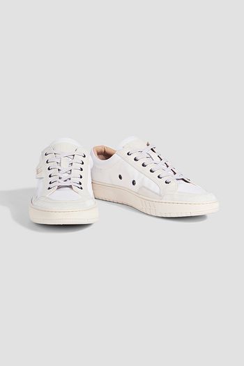 Striped knitted, canvas and pebbled-leather high-top sneakers