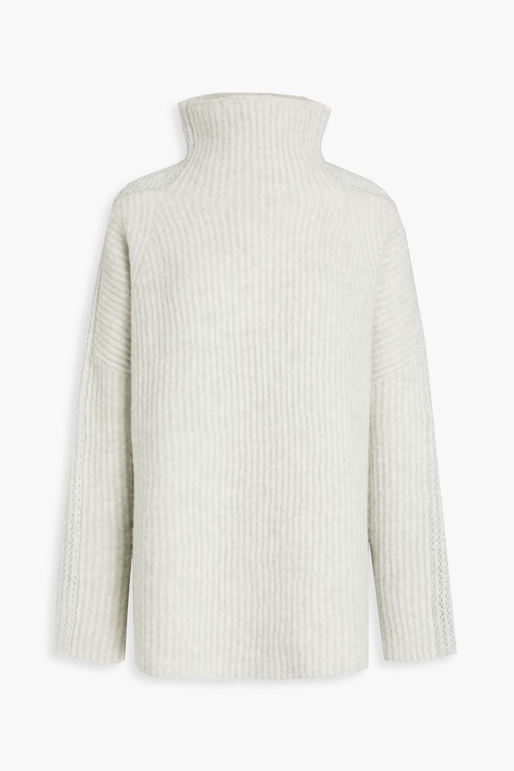 Pointelle-trimmed ribbed-knit turtleneck sweater
