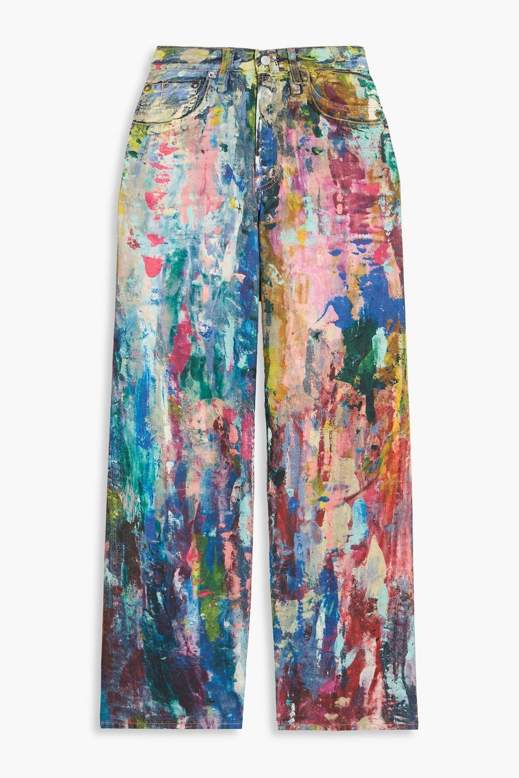 Printed high-rise wide-leg jeans