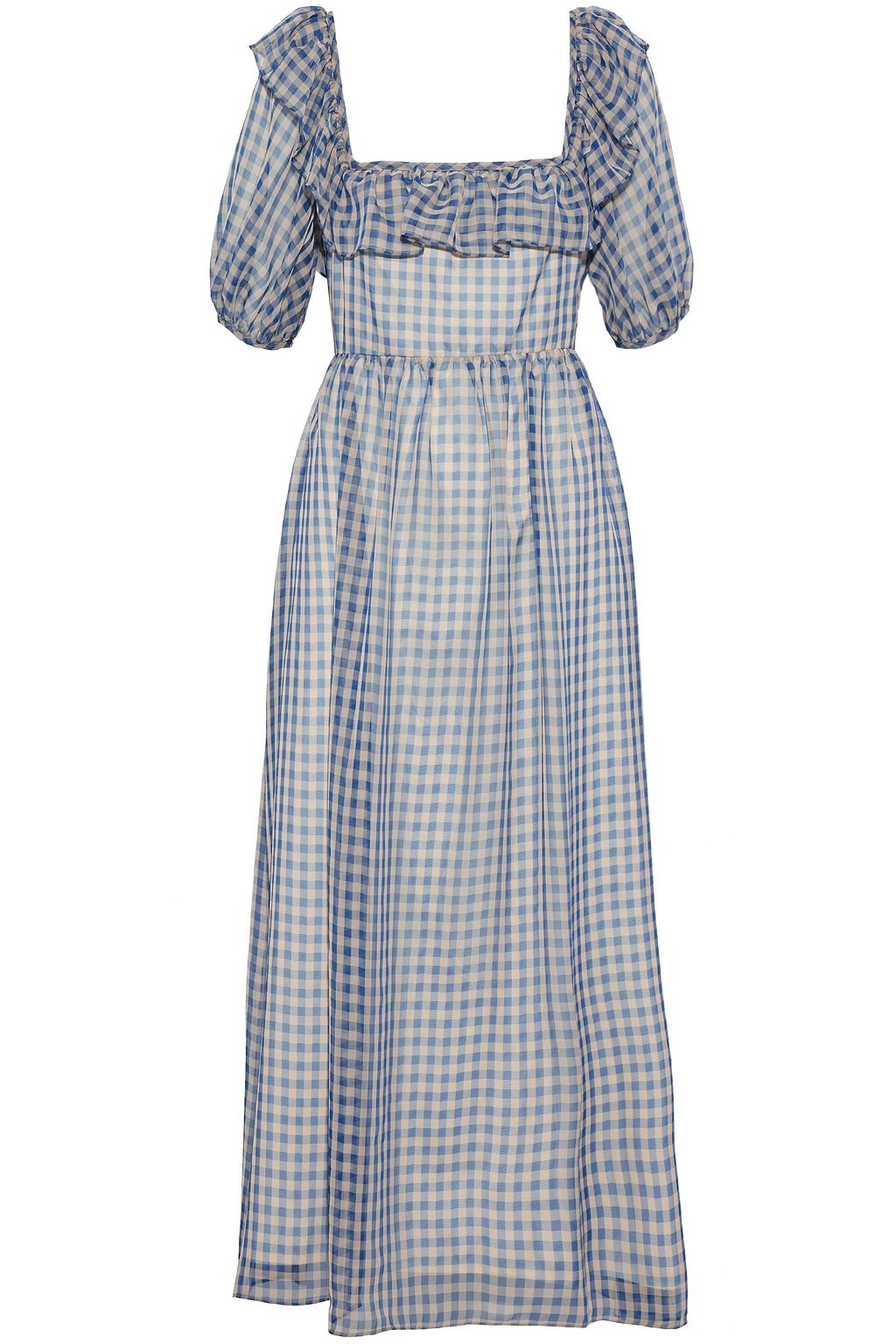 Ruffled gingham chiffon midi dress