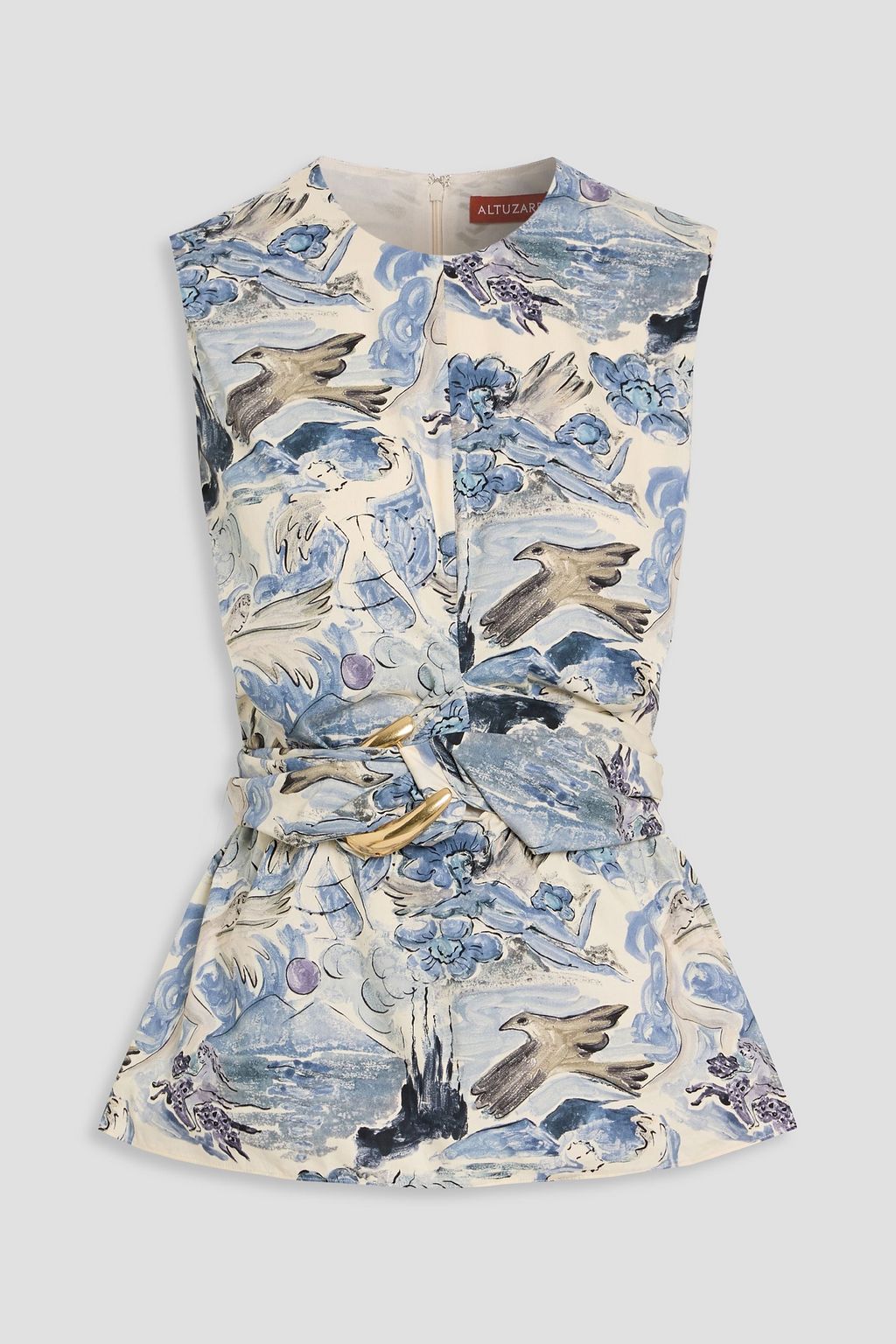 ALTUZARRA Belted printed cotton-blend poplin top