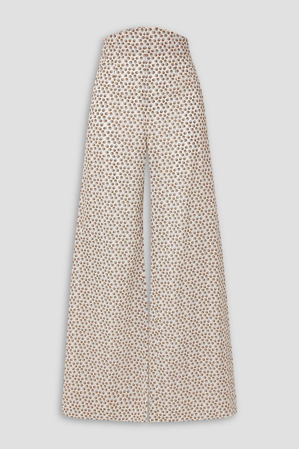 Anna Mason's 'Beau' pants have a chic '70s feel. Cut from smooth cotton printed with ditsy florals, they sit high on the waist and flare out to voluminous wide legs.