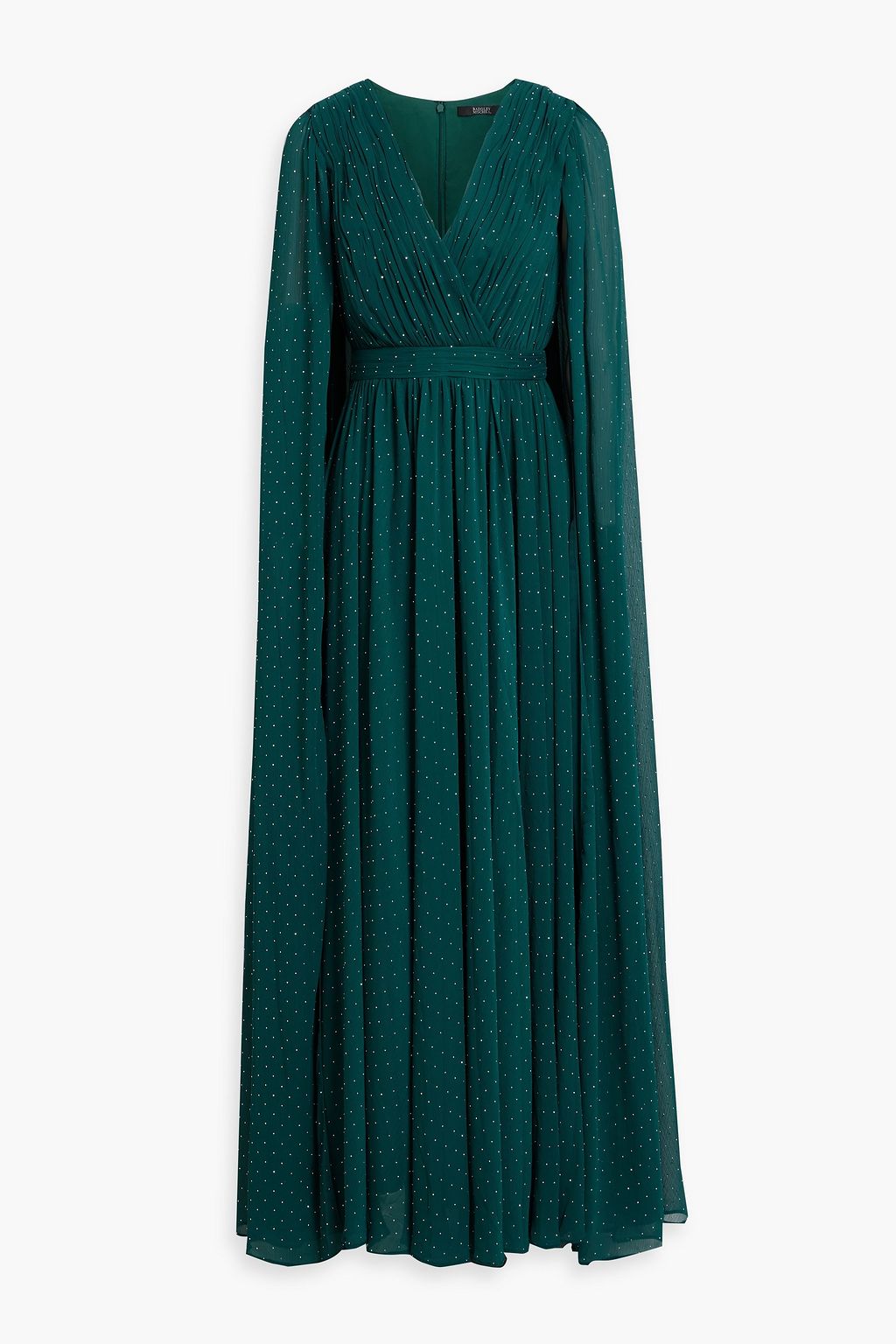 Enter the room in Badgley Mischka’s gorgeous gown and everyone will be asking, who is that. This beauty’s made from airy georgette with tiny crystals all over, with a dramatic cape-effect back – perfect for posing and built-in coverage.
