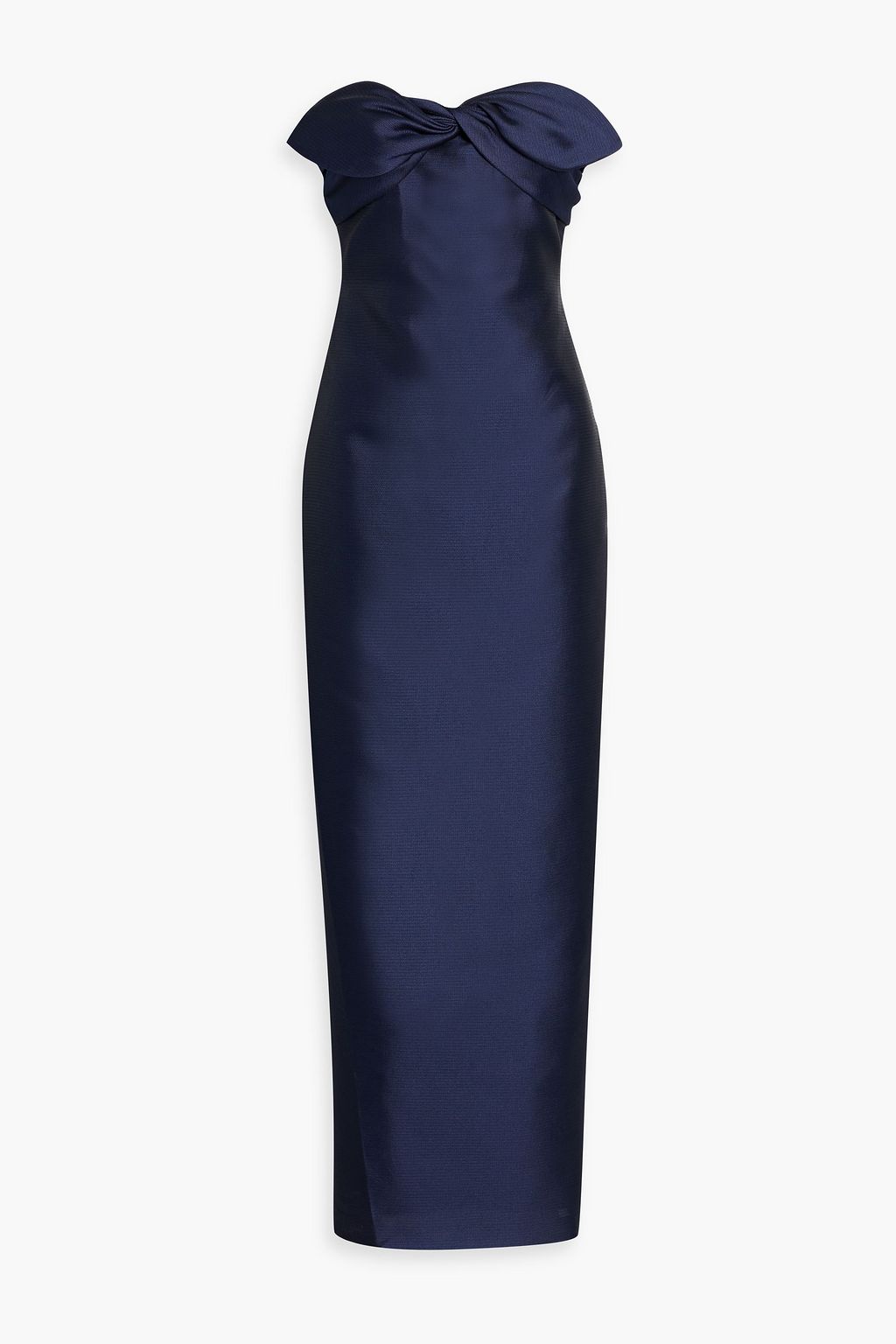 Expect all eyes on you in Badgley Mischka's navy gown. This piece channels red-carpet glamour through a bow-detailed front and a tailored frame that contours the waist. Wear it to formal celebrations with sparkling earrings and a clutch.