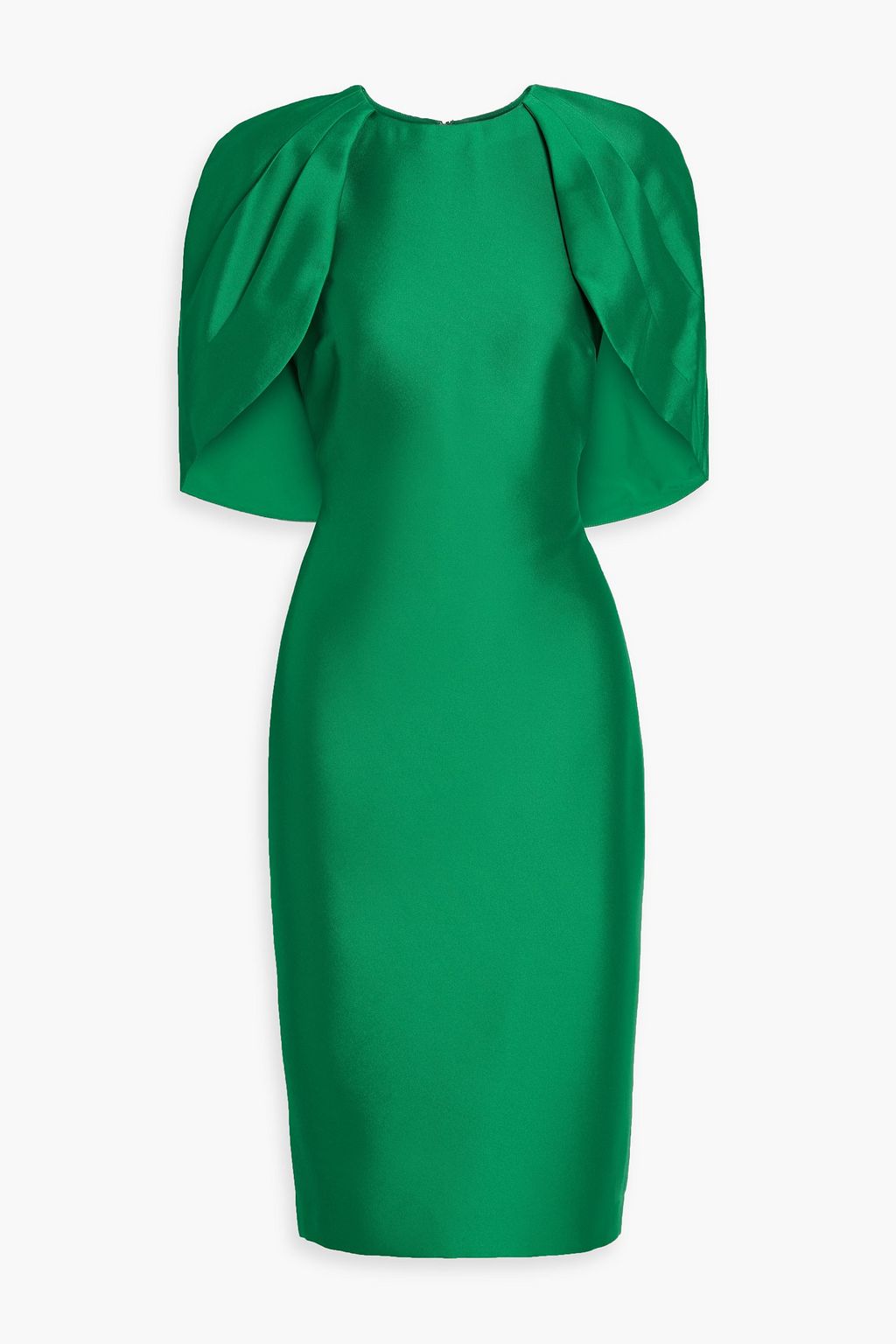 Expect all eyes on you in Badgley Mischka’s emerald green dress. The cape-detail and neat drape frame your shoulders while the back slit allows easy movement. Ideal for a special event — style with pointed pumps and a sleek clutch.
